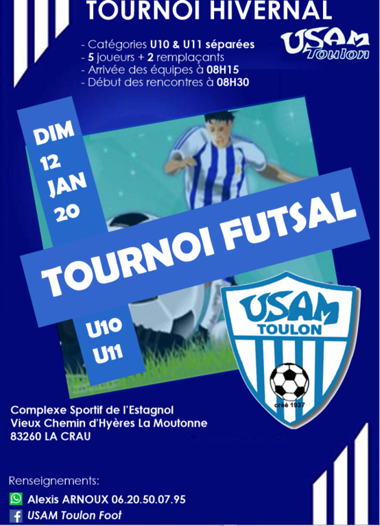 Tournoi Futsal catégories U10 & U11 séparés, organisé par l'USAM Toulon au gymnase de l'Estagnol à La Crau.