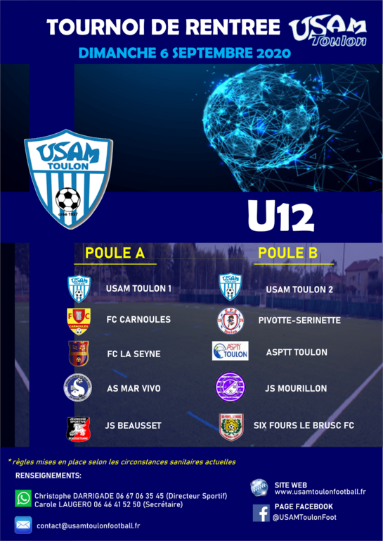 Tournoi de rentrée catégorie U12 au stade des Routes de 9H00 à 16H30: