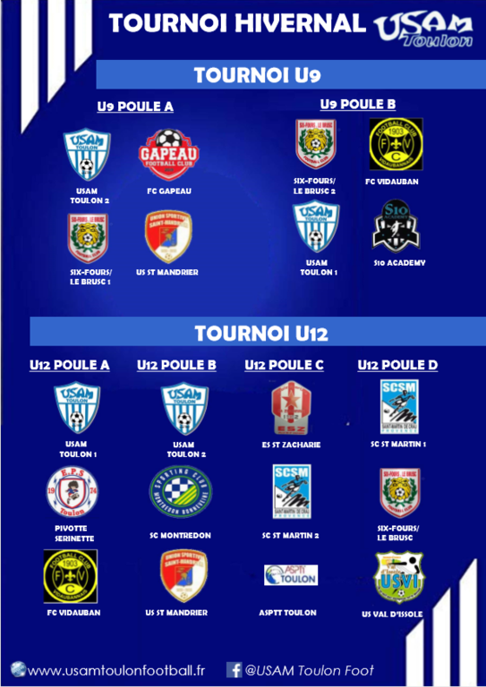 Composition des poules du tournoi Futsal catégories U9 & U12 organisé par l'USAM Toulon au complexe sportif de La Crau