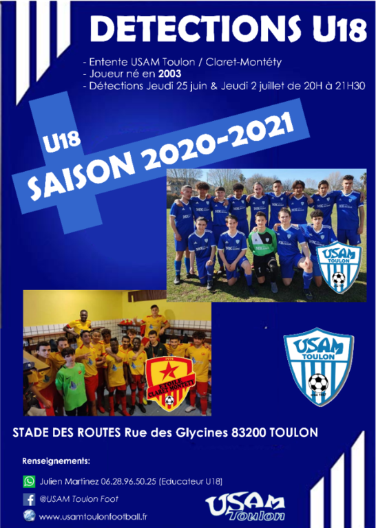 Détections Jeudi 25 juin & Jeudi 2 juillet au stade des Routes de 20H00 à 21H30