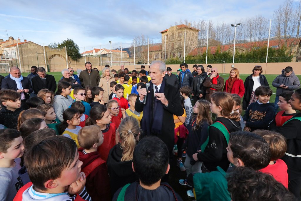 "Ce matin, entourés de nombreux enfants et de glorieux anciens footballeurs professionnels de notre Ville de Toulon tels que Frédéric Meyrieu, Claude Nari et François Simian, nous avons inauguré dans le quartier du Temple le stade Abbé Sasia réhabilité et doté d’une nouvelle pelouse synthétique.