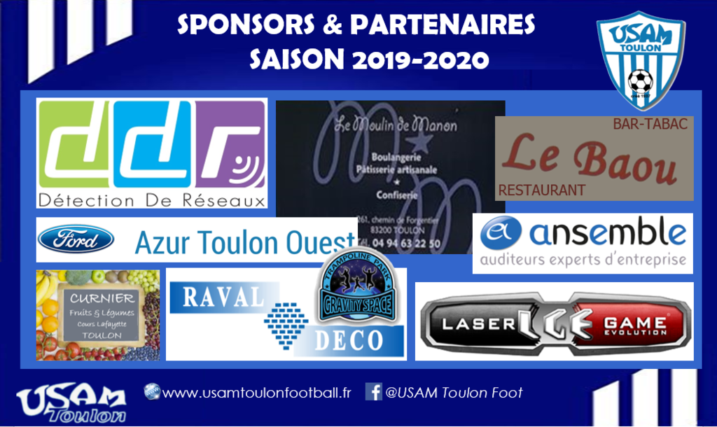 L’USAM Toulon Football remercie sincèrement l'ensemble de ses sponsors et partenaires pour la confiance, le soutien matériel, moral et financier qu'ils nous ont accordé pour cette saison 2019-2020.