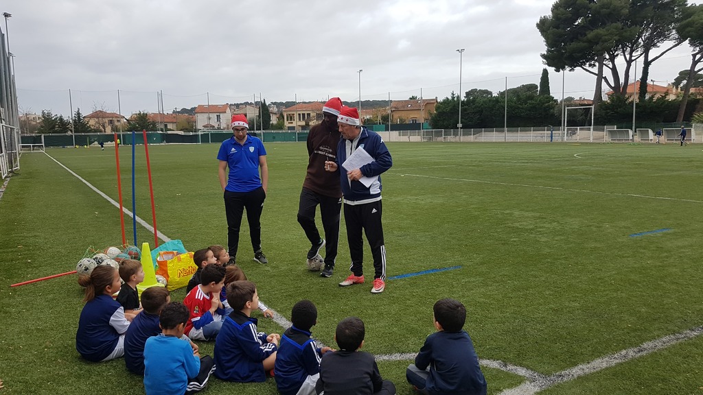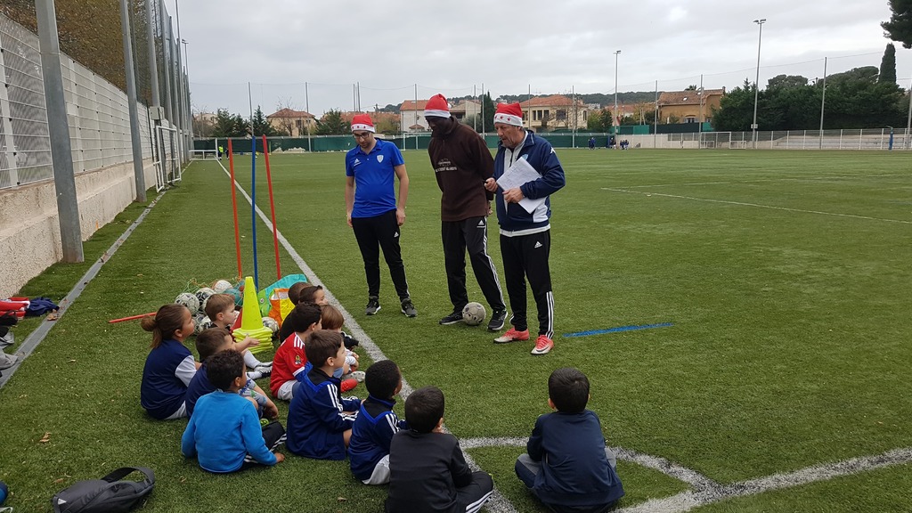 Avant l'entraînement du mercredi 18/12, briefing des U6 sur les valeurs de la FFF: PRETS Plaisir Respect Engagement Tolérance Solidarité