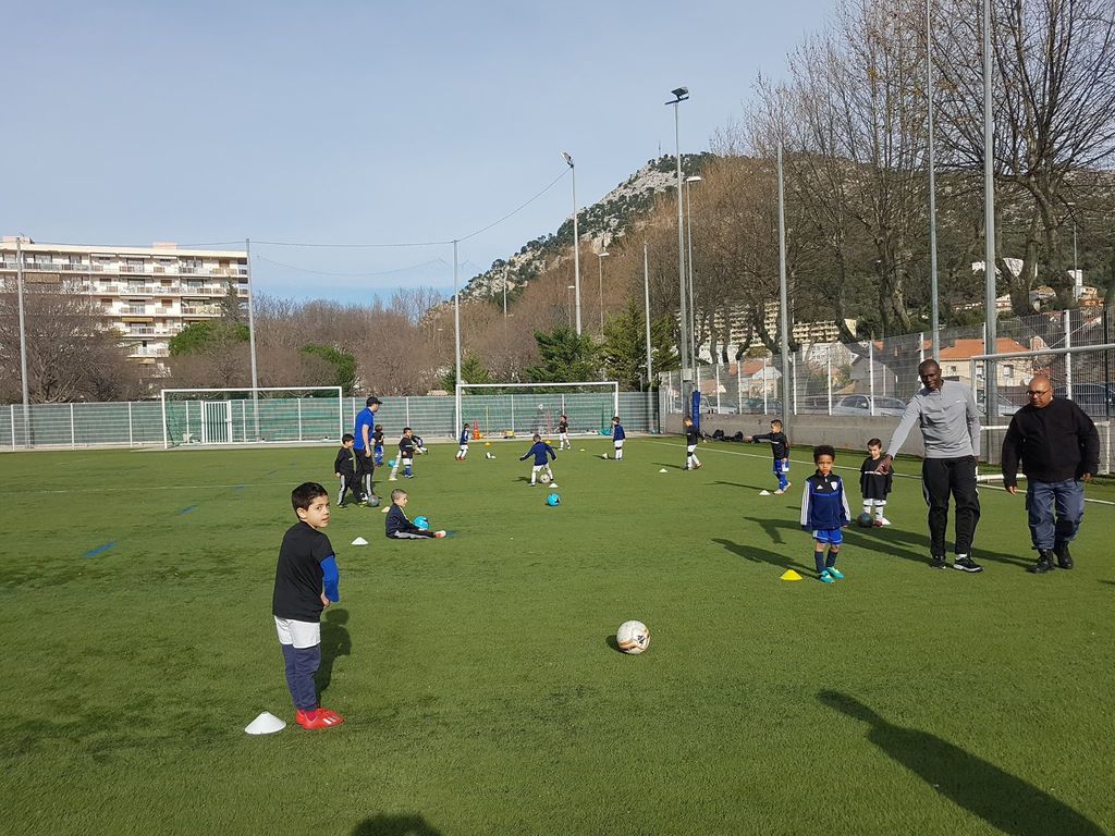 A l'entraînement avec les U6 de l'USAM Toulon et les éducateurs Emaleu Lemalieu, Jérome Cueille, Jean Claude Fazilay Abasse