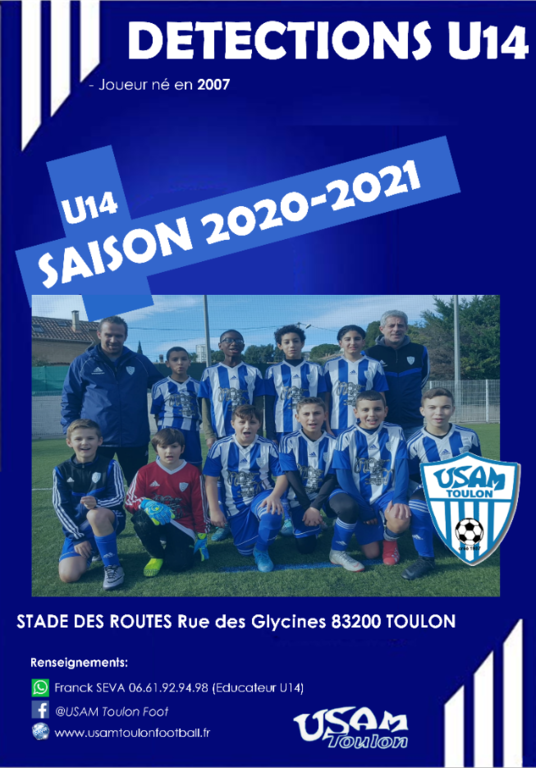 Afin de compléter ses effectifs D1 et D2, l'USAM Toulon cherche des joueurs U14 nés en 2007 aux postes suivants: