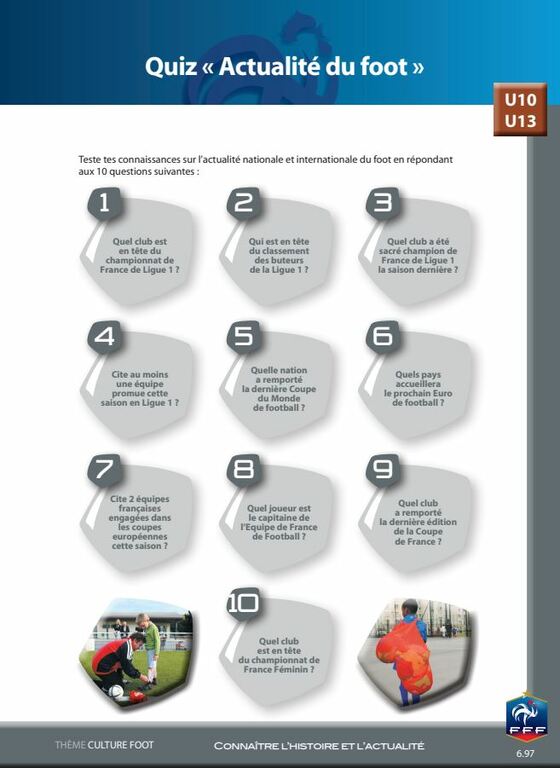 Le thème concerné est CULTURE FOOT avec un QUIZZ sur l'actualité du foot.