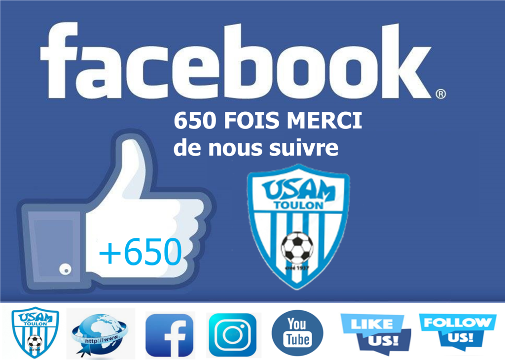 Depuis sa création en Octobre 2019 vous êtes aujourd'hui 650 à nous suivre sur la page Facebook du club de l'USAM TOULON.