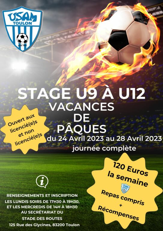 Informations Stage Vacances dePâques- Catégorie U9/10/U11/U12
